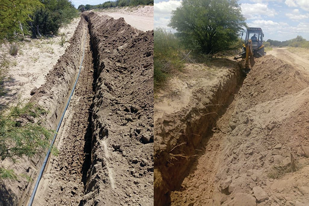 El Acueducto Río Amieva posee una longitud total de 125 kilómetros, transportando un caudal de 20 h/seg. Su superficie de influencia es de 131.000 hectáreas, siendo sus usos prioritarios el humano y pecuario. Algunas de las localidades y parajes alcanzados por esta línea de conducción son Villa General Roca, Toro Negro, Pozo del Tala, El Divisadero y El Buen Orden.